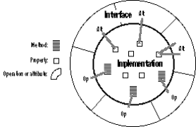 Figure 2-4 : The components of an object are divided into its interface (the outer ring) and its implementation (the inner circle).